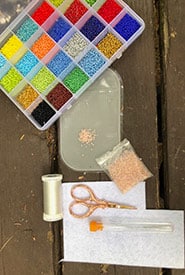 Beading Supplies Raechel W Profile September 8, 2025 These are my beading basics: bead mat, beading needles, stiffened felt, clear beading string and colourful seed beads (Photo Raechel Wastesicoot/NCC)
