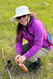 Studying the outcomes and interactions of different management practices is an important aspect of guiding conservation from local to landscape scales. Here, Jessica Sánchez-Jasso takes soil samples as part of a research partnership at the Manitoba Tall Grass Prairie Preserve (Photo by Aerin Jacob/NCC staff).